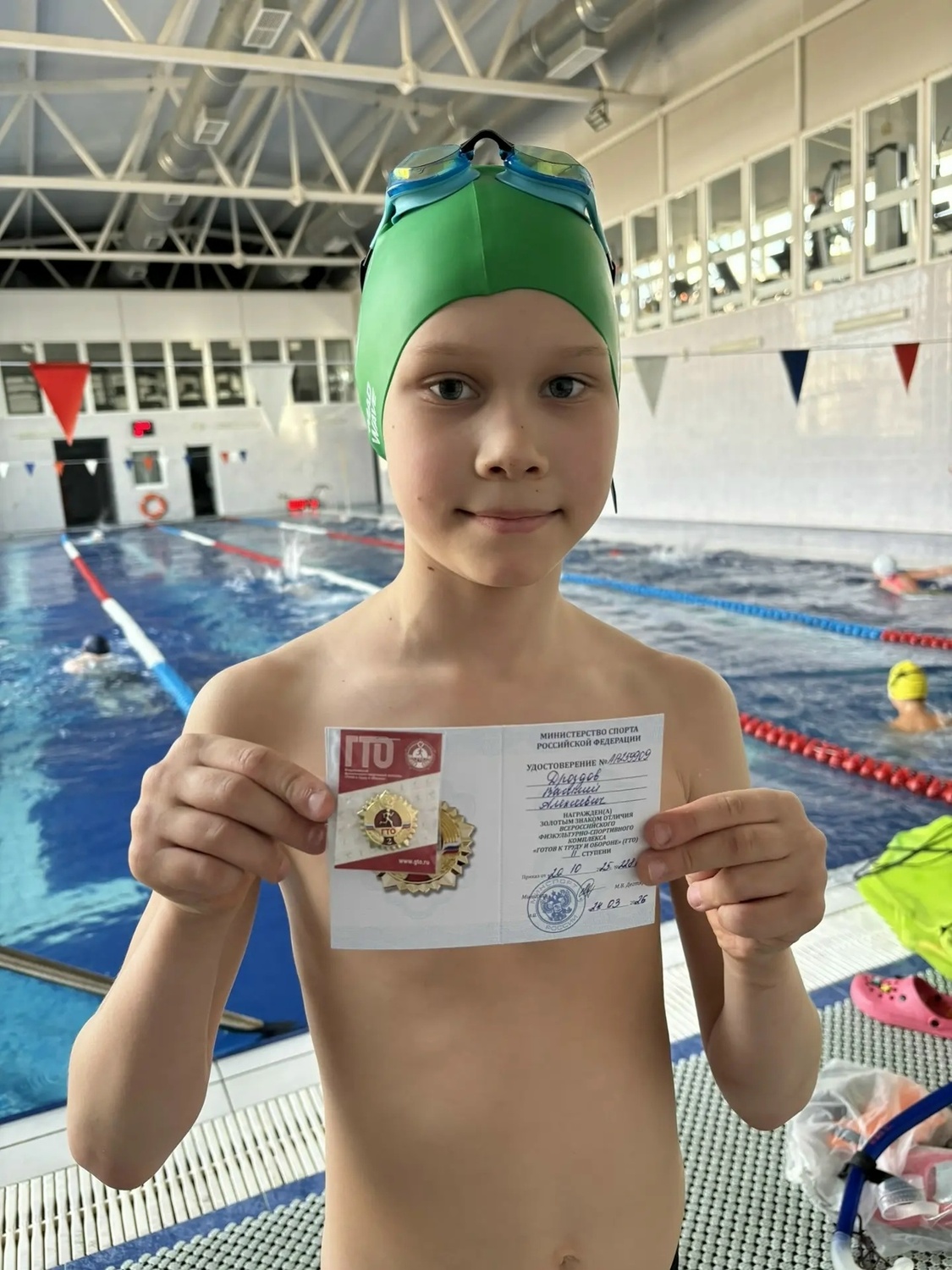 Сегодняшняя тренировка началась с особенного момента – вручения знака отличия ГТО! И это не просто награда, а заслуженное признание упорного труда и целеустремленности нашего спортсмена, Василия.Василий – действующий пловец, и его ежедневные тренировки в бассейне уже давно приносят впечатляющие результаты. Но сегодня мы гордимся им не только за его успехи в воде!